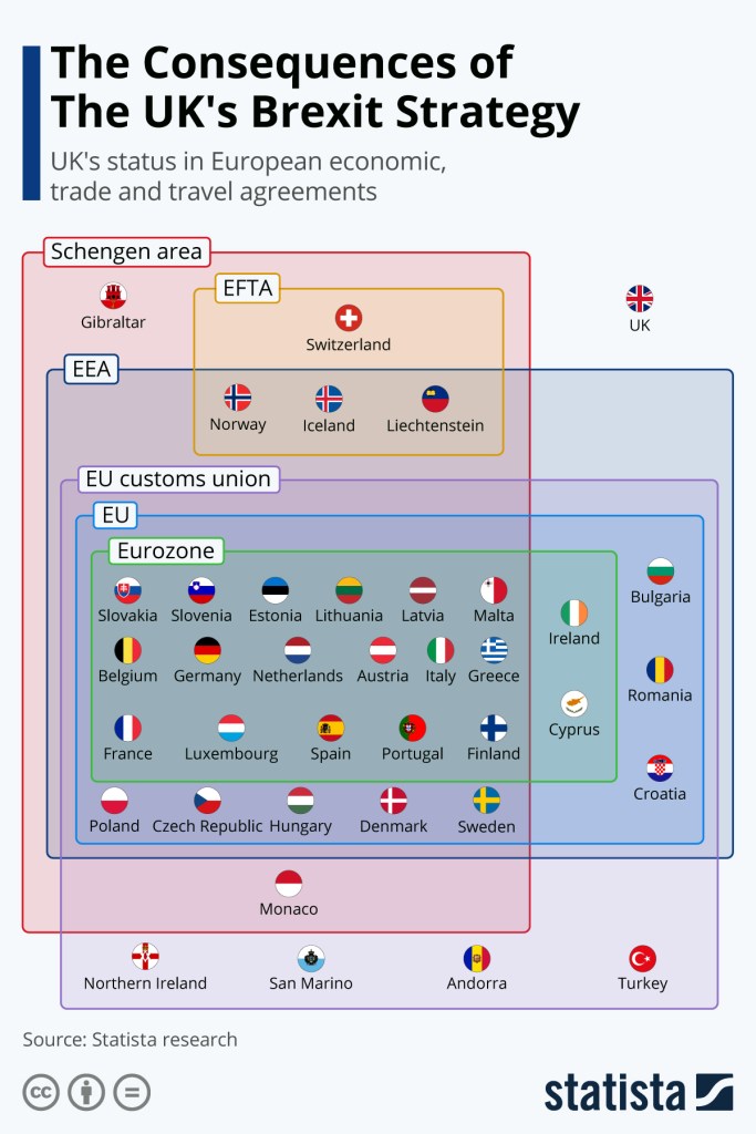 Graphic Representation of the EU and Consequences of Brexit Posted on February 18, 2021 by Mr. Lakhaney https://www.statista.com/chart/24212/uk-status-in-european-agreements/?utm_source=Statista+Global&utm_campaign=5ae298011e-All_InfographTicker_daily_COM_AM_KW05_2021_Th_COPY&utm_medium=email&utm_term=0_afecd219f5-5ae298011e-313370982Share this: Click to share on X (Opens in new window) X Click to share on Facebook (Opens in new window) Facebook Like Loading...